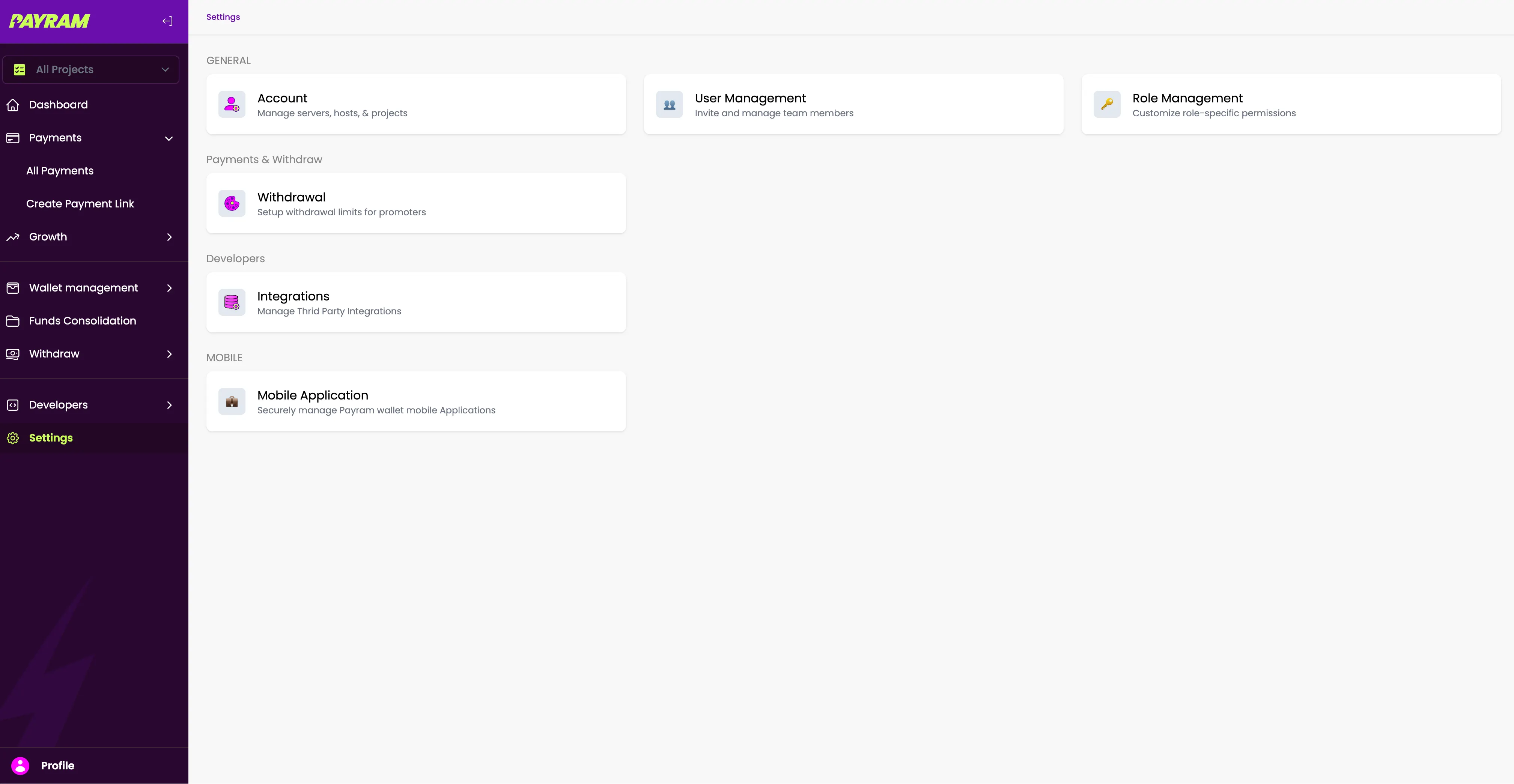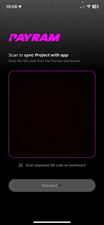 Navigate to Settings and click on it. Then, go to the Accounts tab. You will see a QR code labeled Connect to PayRam Mobile App. This QR code is used to sync the app with your PayRam server. Download the PayRam mobile app from the app store separately, then scan this QR code to complete the sync.