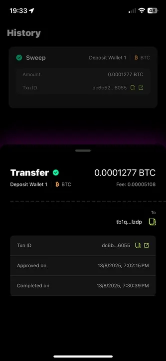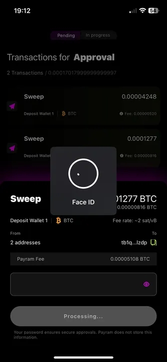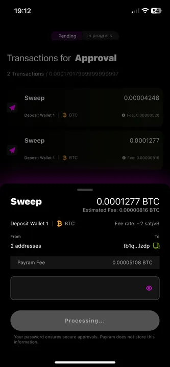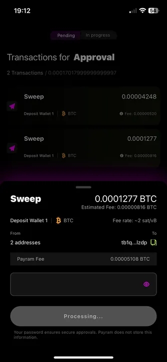 In this section you’ll learn how to sweep BTC funds from your deposit addresses to your cold wallet using the PayRam mobile app.