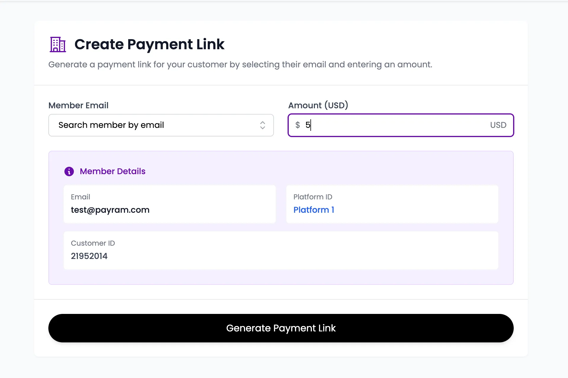 In this section, you’ll learn how to accept payments from customers using PayRam by creating and sharing a payment link.